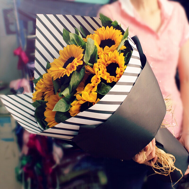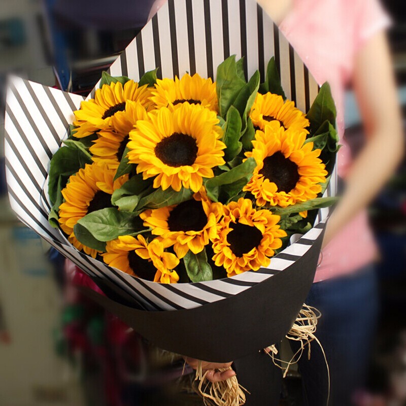 花 材:9支精品向日葵,搭配绿叶丰满装饰。