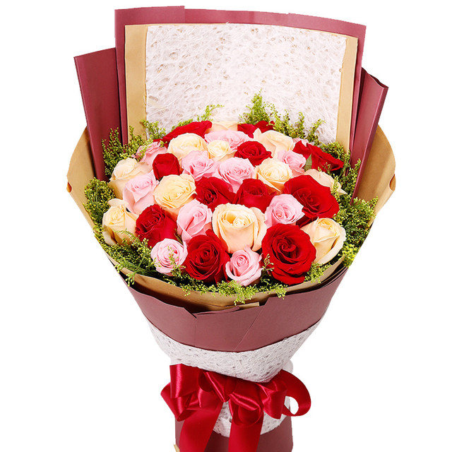 第一次我在网上买花,从下单到收货就半个小时,而且是在第四线城市,简直是惊喜啊!花基本满意,朋友收到后就拆了插花瓶了