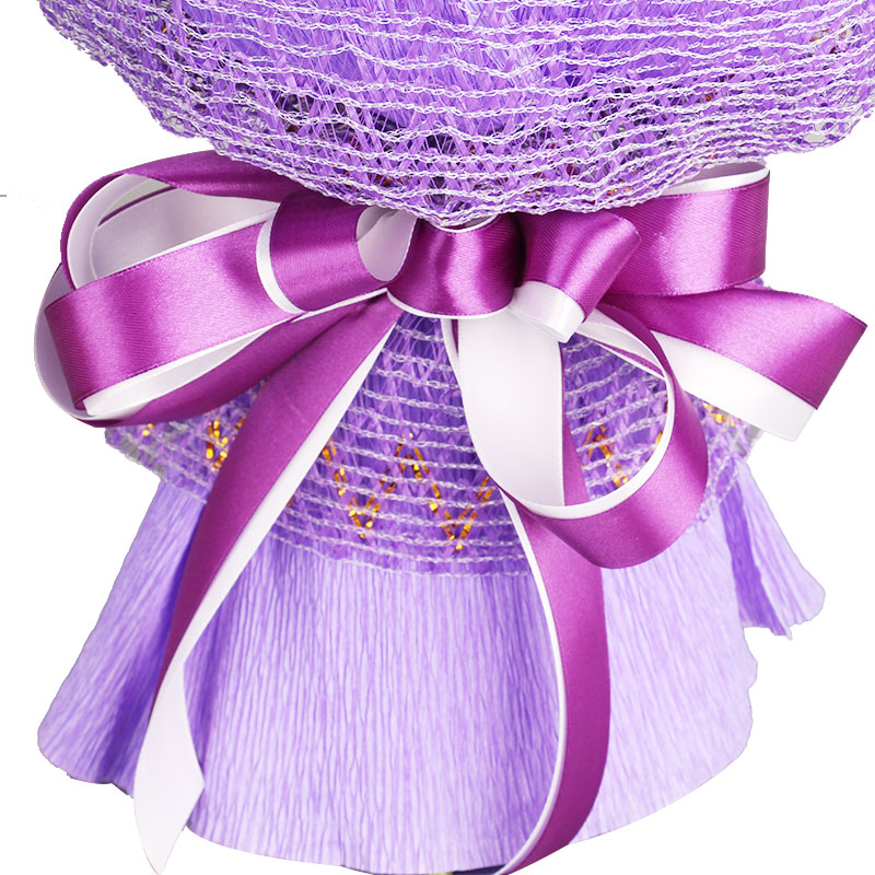 包 装:紫色卷边纸双层包装,白色网纱,精美花结。