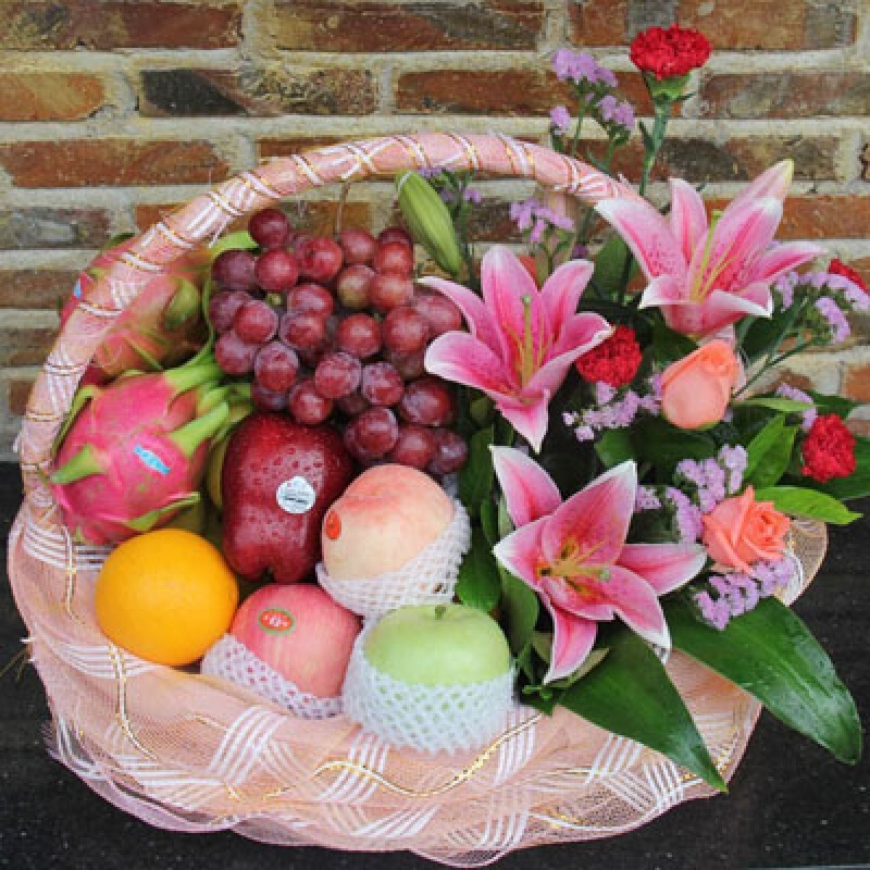 包 装:精美果篮1个(图上没有的水果,则以时令水果代替,不再通知订货人,篮子和配饰等具体以当地实物为准)