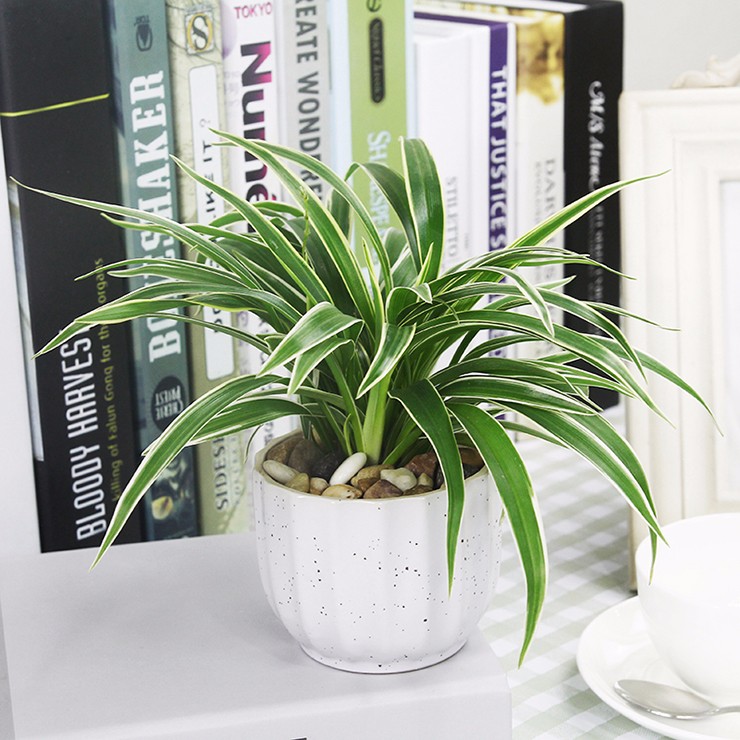 花材: 金边吊兰;提供充足的水分,避免缺水积水,夏季应遮阴,经常修剪枝叶