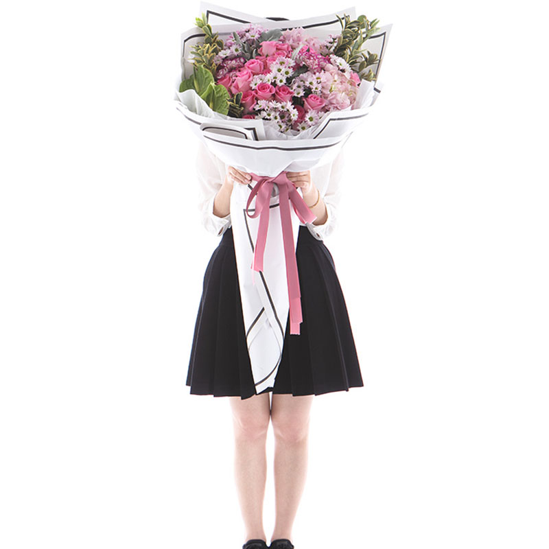 包 装:白色软纸+黑边白色硬纸韩式扇形包装,精美粉色丝带蝴蝶结束扎。