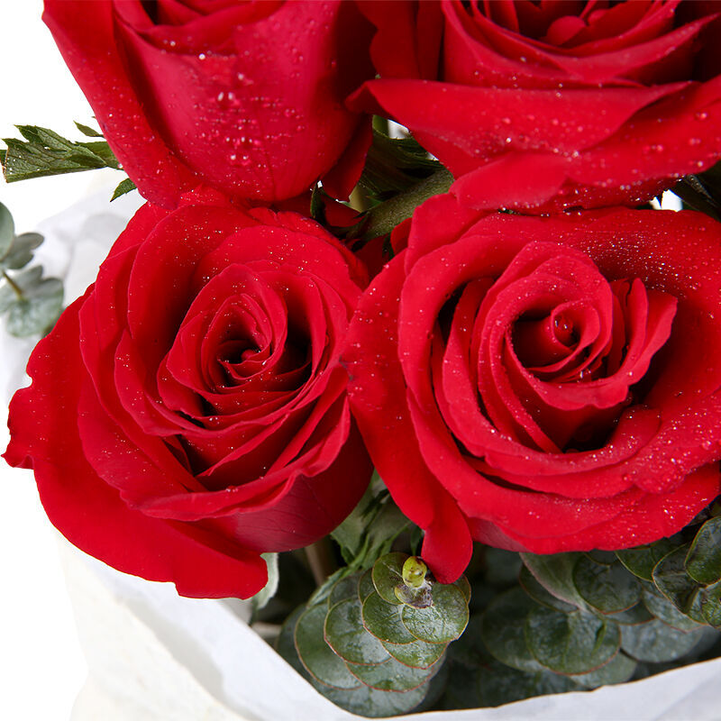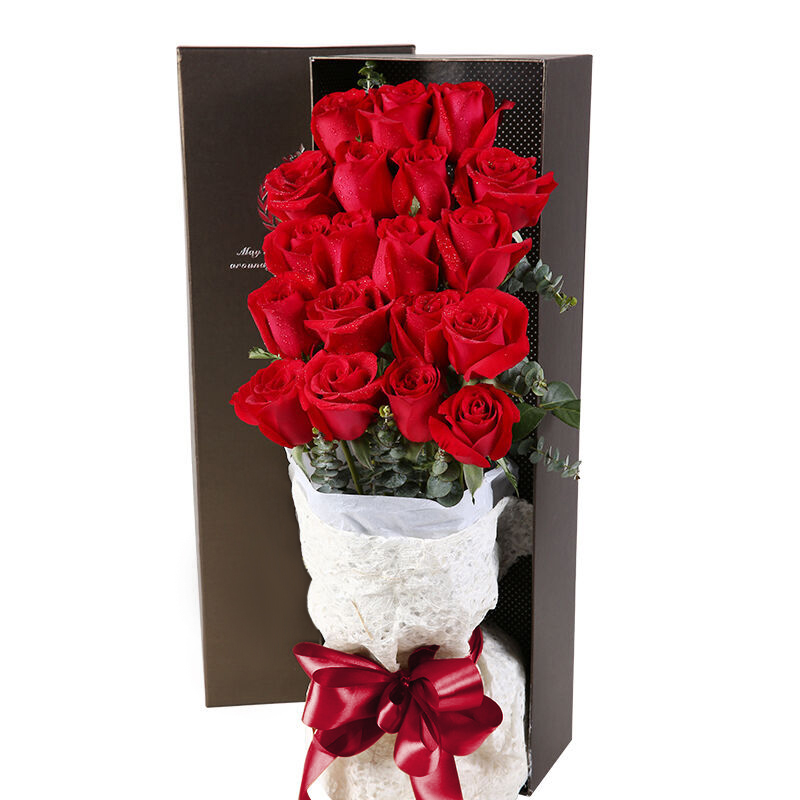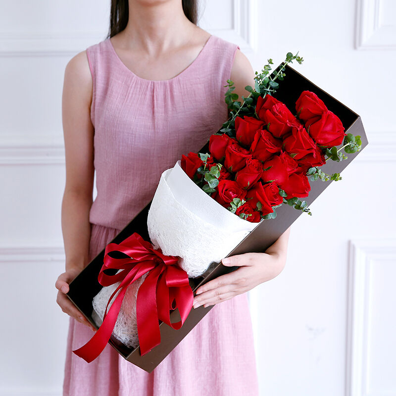 花材: 19支精品红玫瑰,搭配适量尤加利