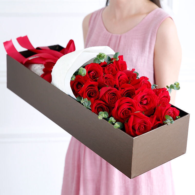 花 材:19支精品红玫瑰,搭配适量尤加利