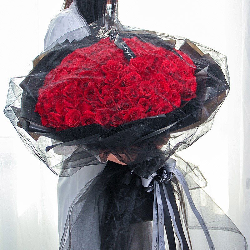 包 装:黑色雾面纸包装,黑色网纱装饰,灰色英文丝带+黑色英文丝带束扎。