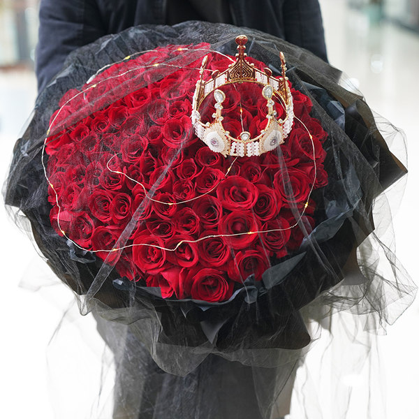 花 材:99支精品红玫瑰,可发光灯带+精美皇冠装饰。