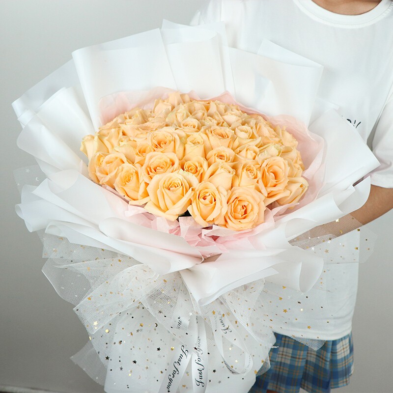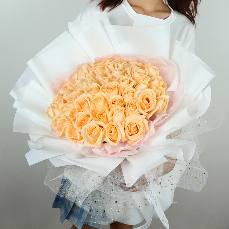 老婆说花的质量特别好!每个花朵都很饱满,没有一点瑕疵,好的花看起来像假的一样。老婆很满意,还会光顾!
