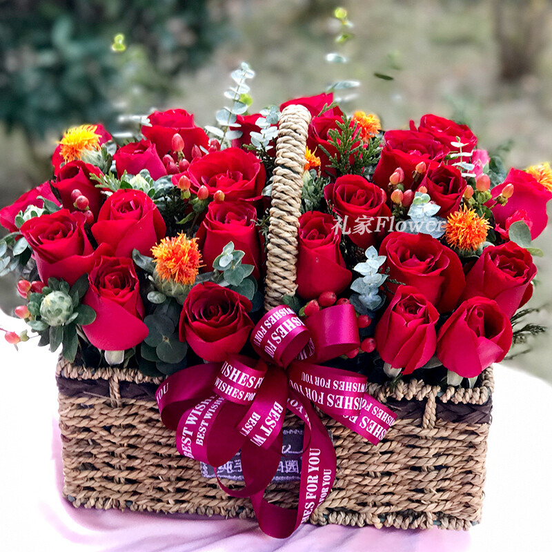 包 装:精美手提花篮(花篮和配饰等具体以当地实物为准)