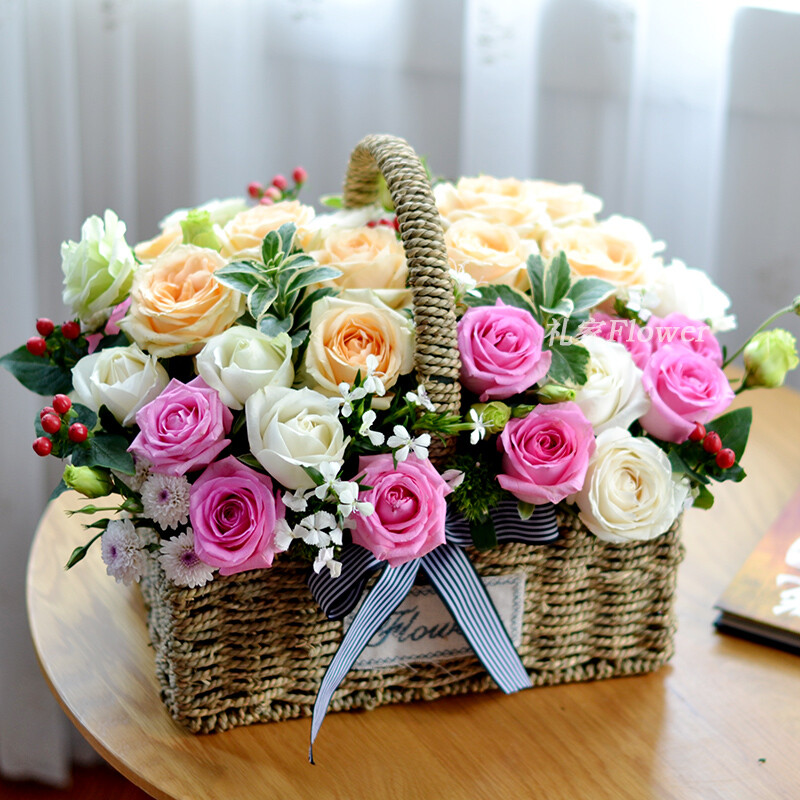 包 装:精美手提花篮(花篮和配饰等具体以当地实物为准)