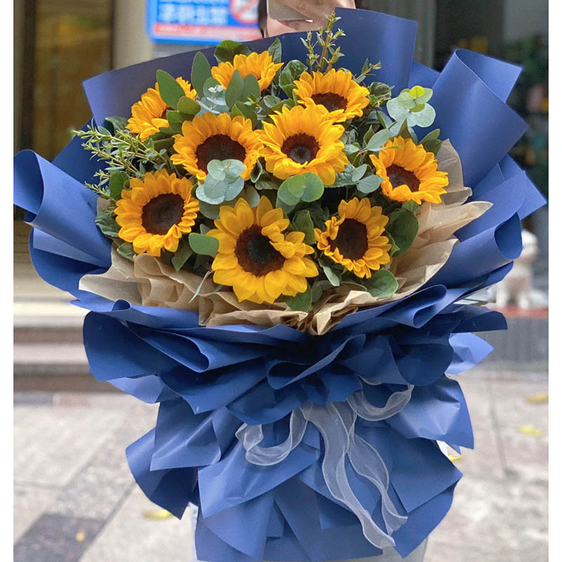 花 材:精选9支向日葵花束,尤加利叶装饰。