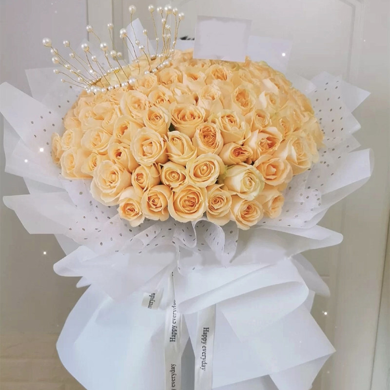 花 材:99朵精品香槟玫瑰,搭配皇冠装饰。