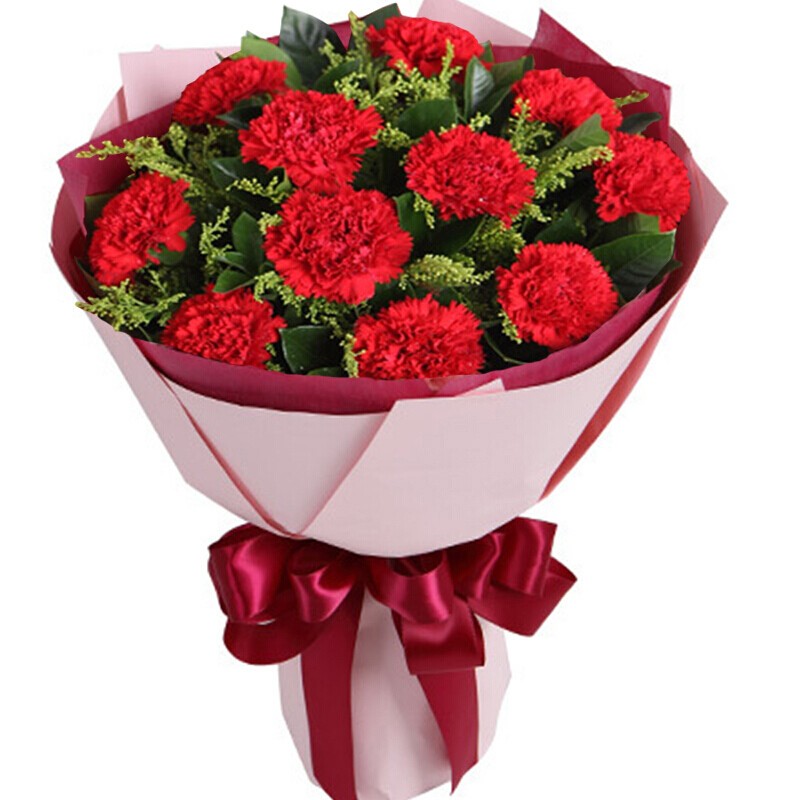最美的祝福 - 11朵红色康乃馨,黄英和栀子叶间插。