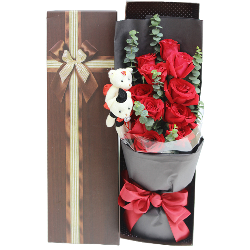 - 幸福听得见 - 11朵红玫瑰,一对小熊,搭配尤加利叶。