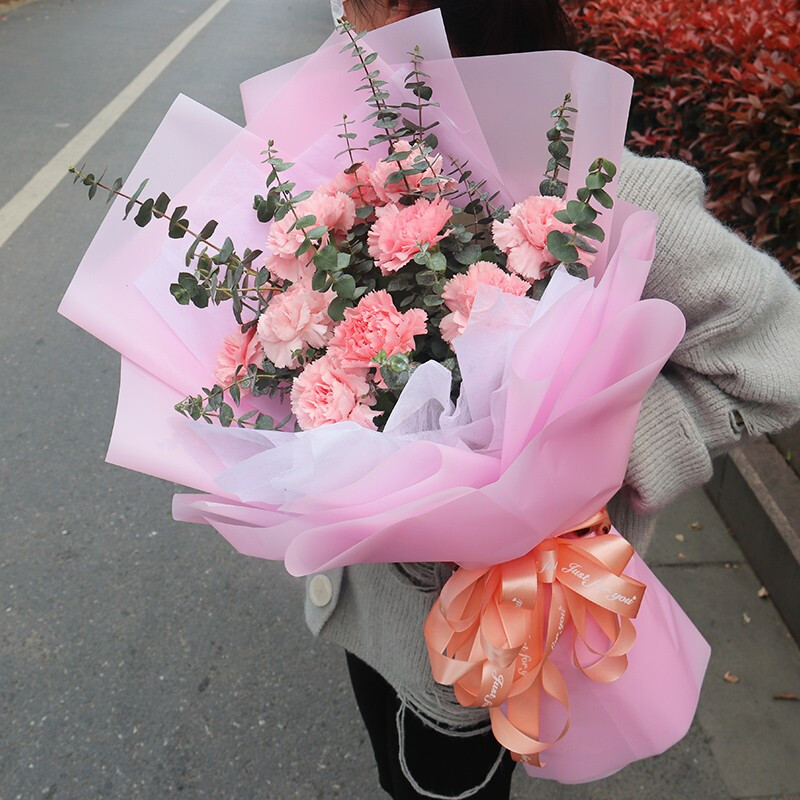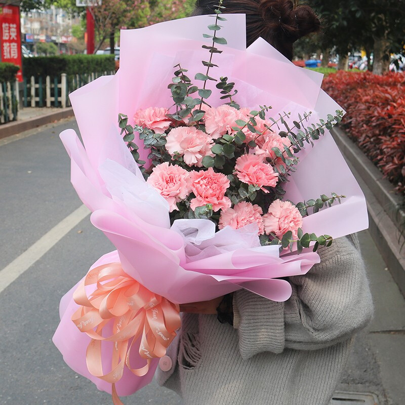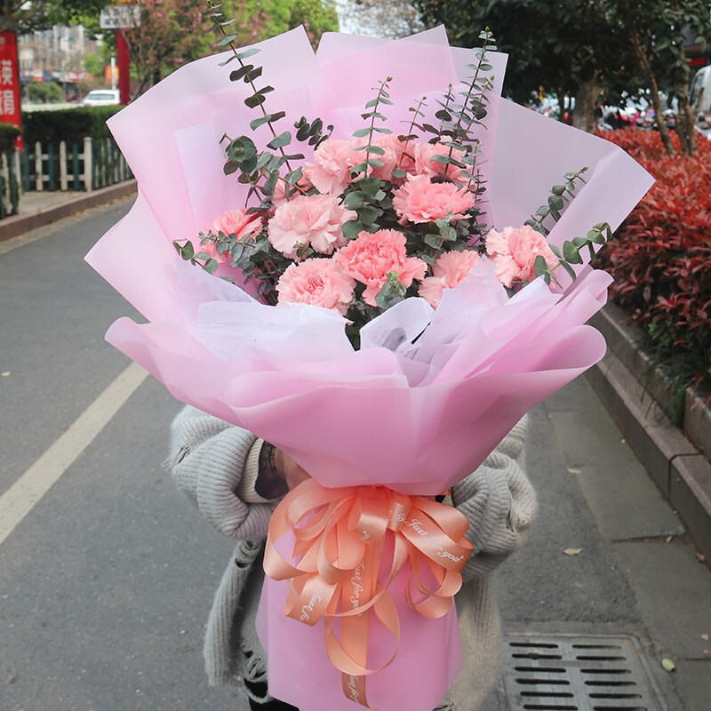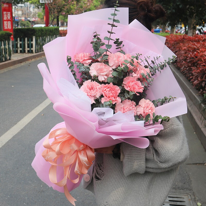 锦绣未来 - 11朵粉色康乃馨,搭配尤加利叶。