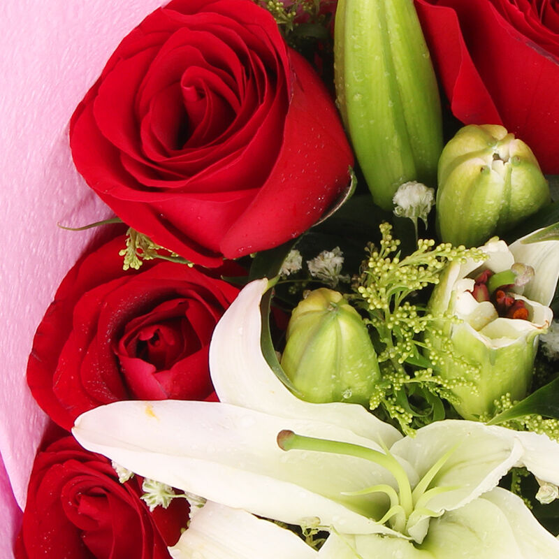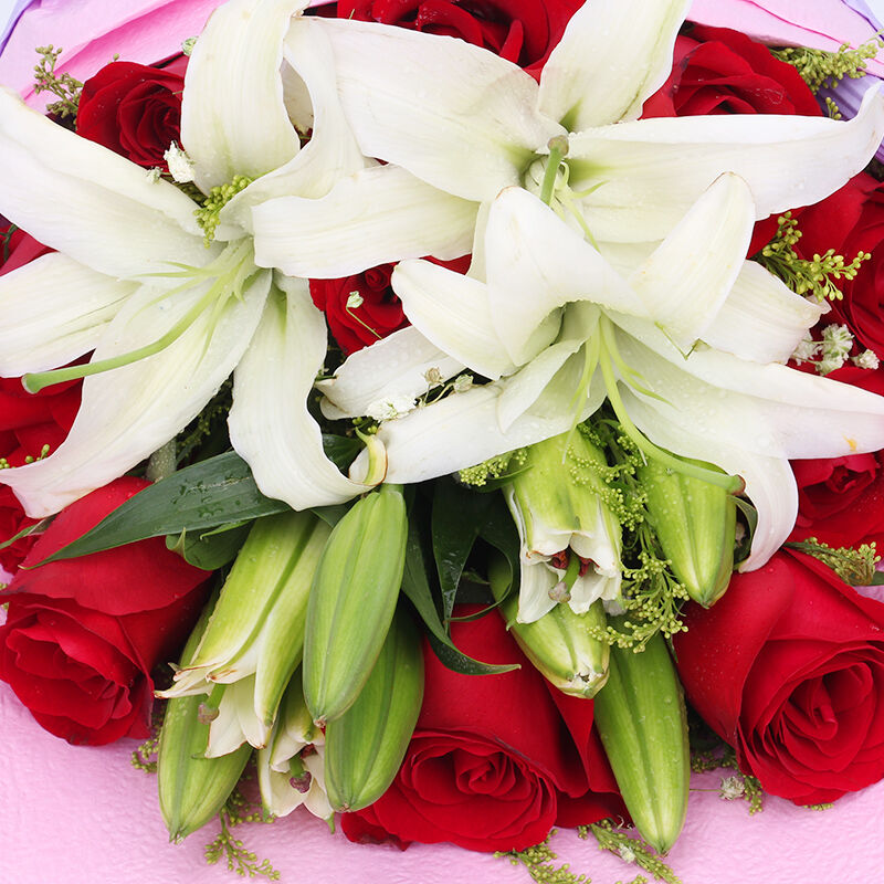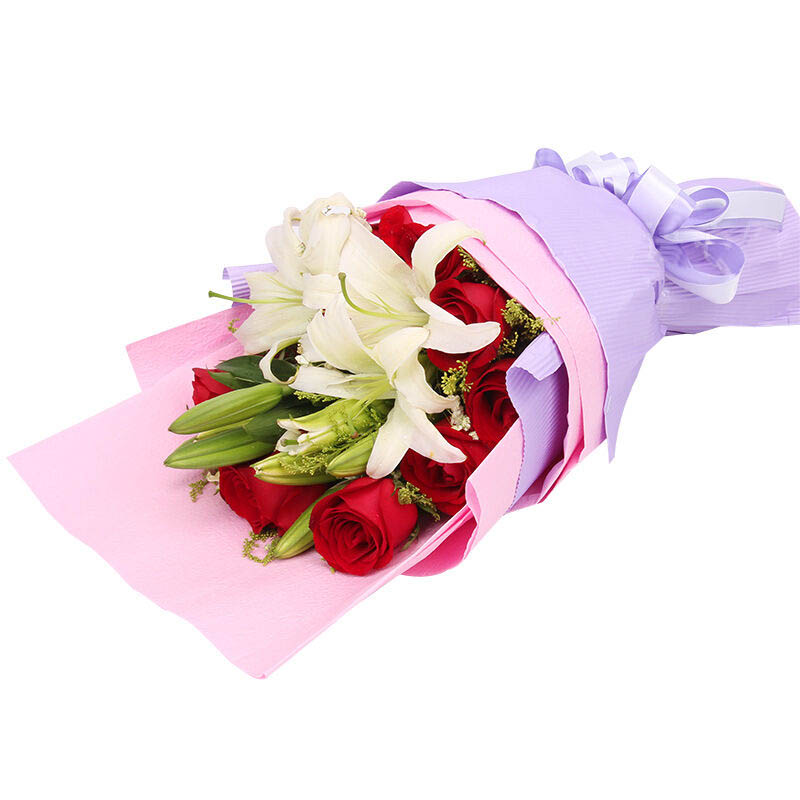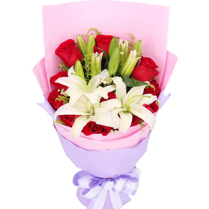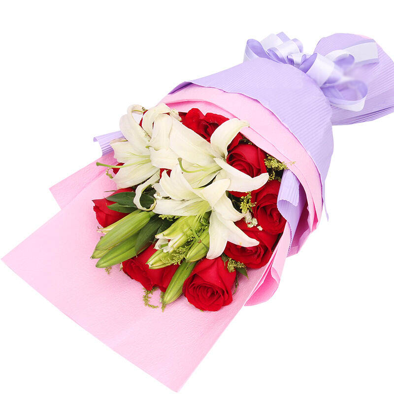 唯你最爱 - 11朵红玫瑰,3支多头白色香水百合,黄莺点缀。